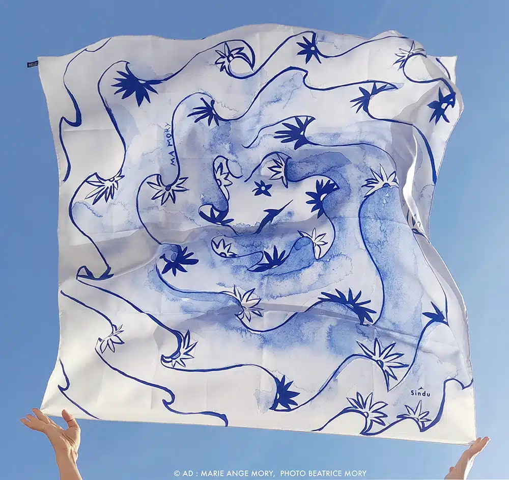 Chaque motif et nuance sont méticuleusement imprimés sur une soie d’exception. 100 % twill de soie