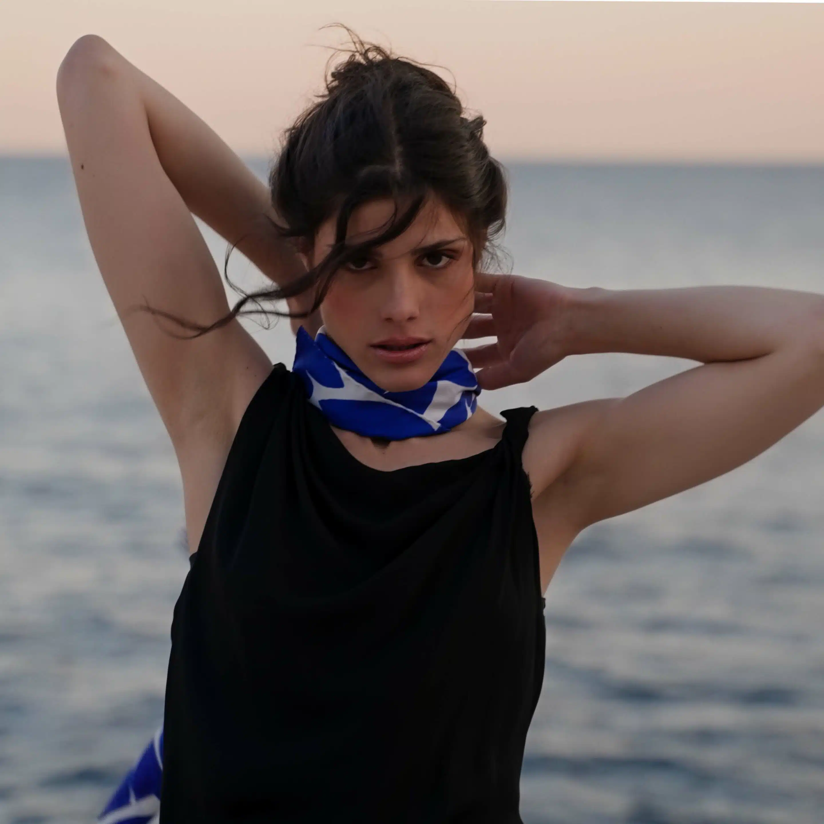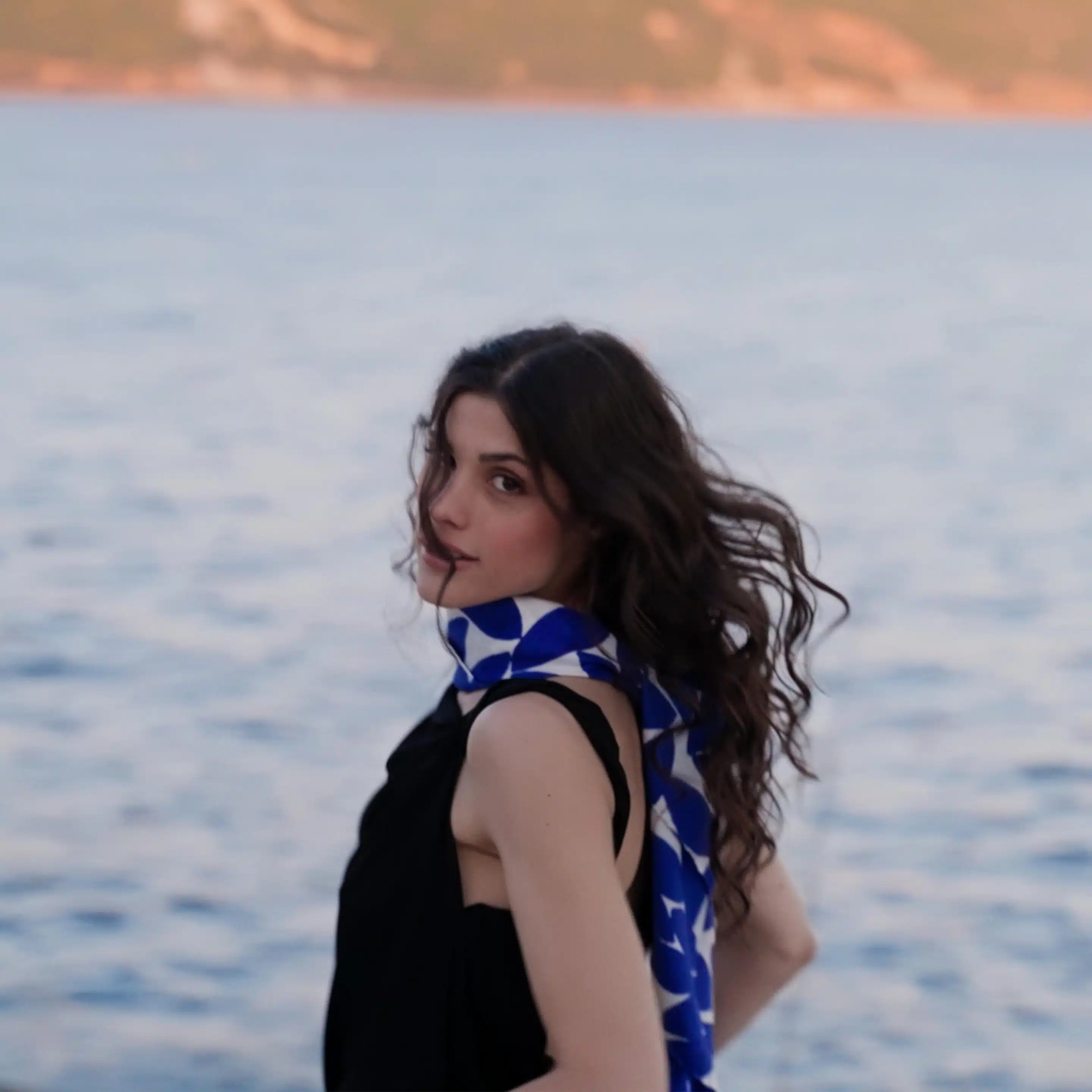 Inspiration : Chaque coup de pinceau évoque la douceur pâtissière et l'azur méditerranéen. Cette création d'art sur soie en édition numérotée est une véritable célébration de l'union entre l'art, l'artisanat pâtissier, l'émotion et la mode.